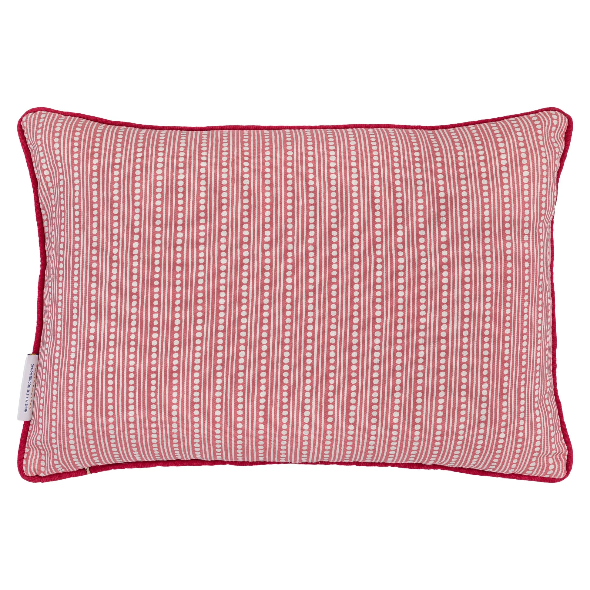 Delicate and decorative, Angelica has a distinctive floral embroidery. This cushion is finished with red piping and backed with our signature 'Wicklewood' fabric in pink.