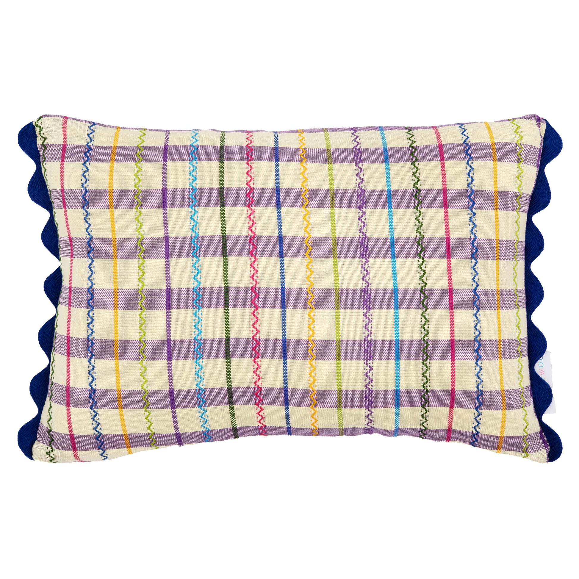Crafted out of our original Guatemalan embroidered gingham design, this oblong cushion trimmed with navy scalloped edge is a collector's item. With Blithfield’s pink ‘Wicklewood’ fabric on the reverse, this cushion looks fabulous front and back and can be flipped over for a fresh new look in your room.