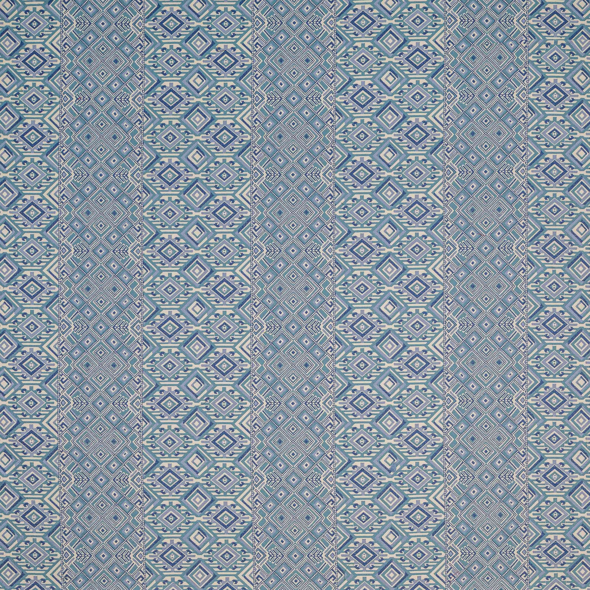 A woven jacquard design in a palette of blue tones, our Nahuala design was inspired by original Guatemalan textiles from the Lilly de Jongh Osborne archive. Nahuala is a vibrant fabric that celebrates traditional Guatemalan diamond motifs to create a variety of intricate patterns in the design.