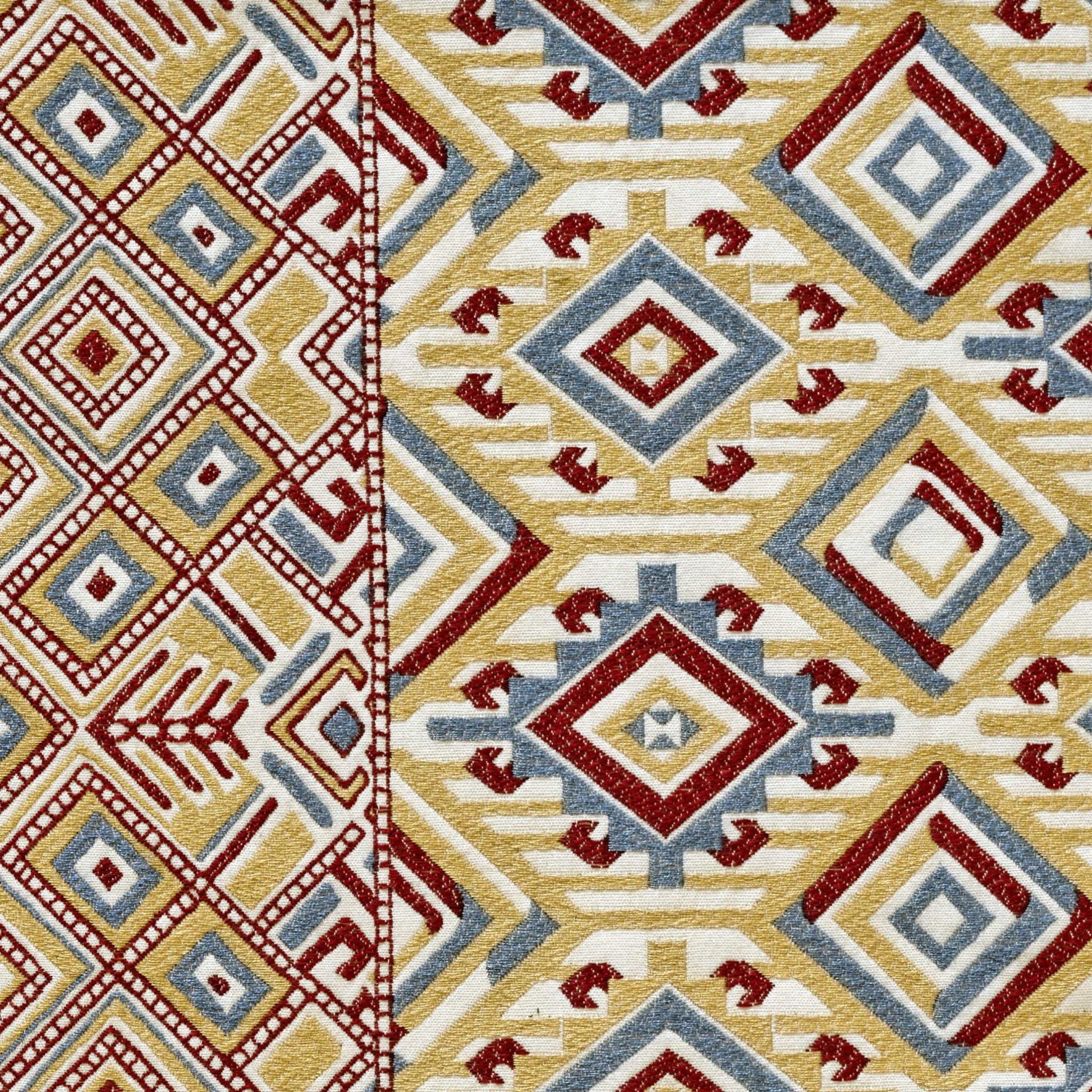 A woven jacquard design in a palette of yellow and jewel tones, our Nahuala design was inspired by original Guatemalan textiles from the Lilly de Jongh Osborne archive. Nahuala is a vibrant fabric that celebrates traditional Guatemalan diamond motifs to create a variety of intricate patterns in the design.
