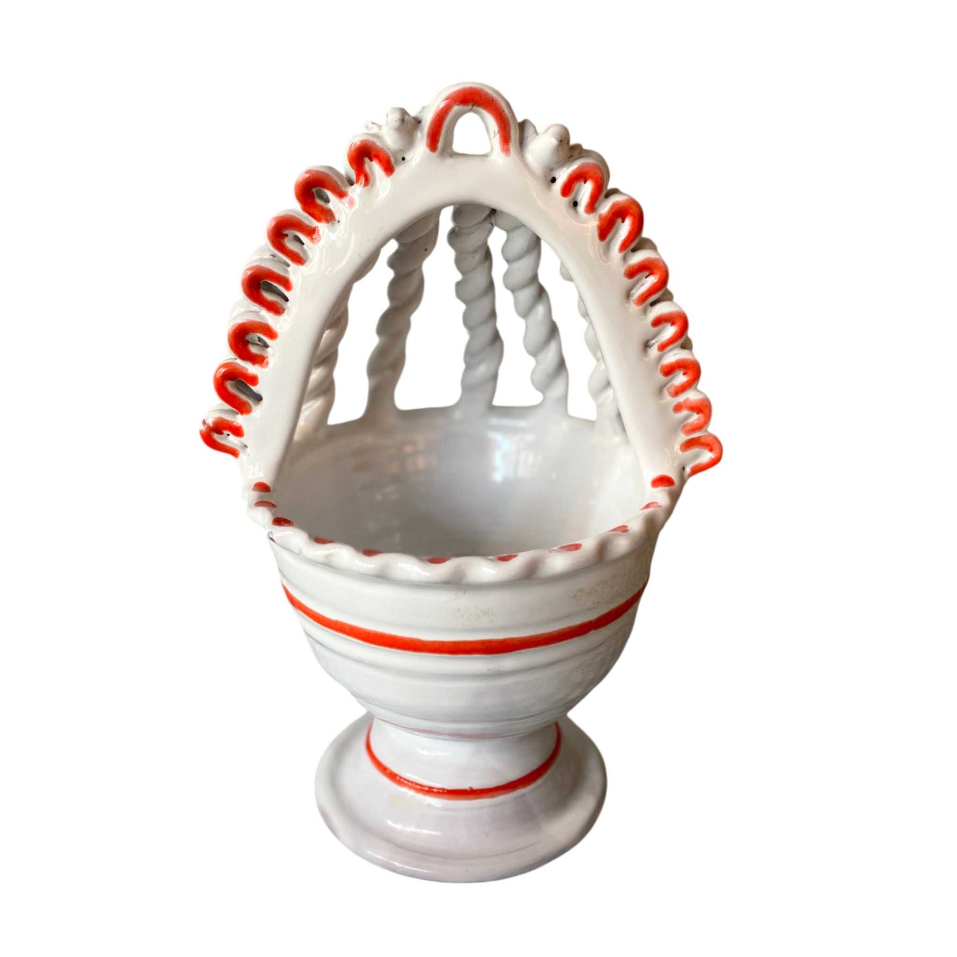 Twisted-Handle Guatemalan Ceramic Basket White Red